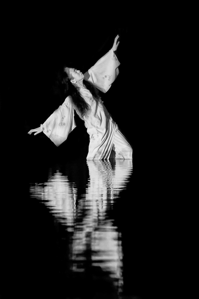 Eiko & Koma and their collaborator Robert Mirabal of Taos, NM, performed in the reflection pool with the famous Henry Moore sculpture as their back ground.