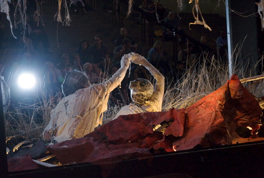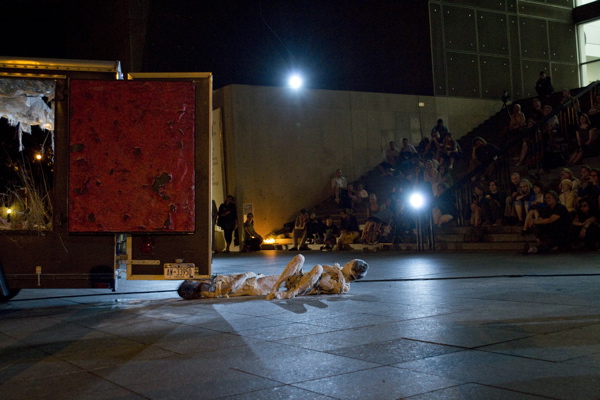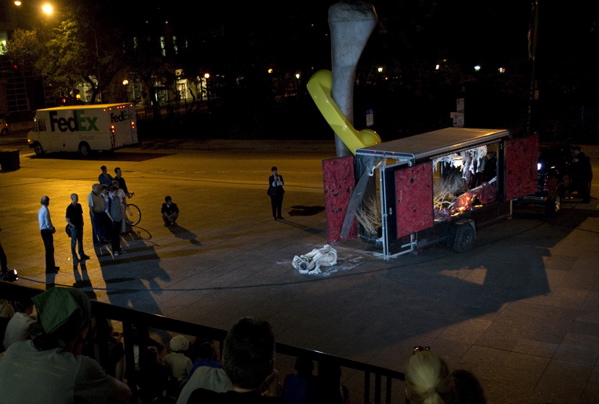 As part of their 40th anniversary retrospective project, Eiko & Koma performed The Caravan Project on August 23 and 24 on the MCA Plaza, Chicago.