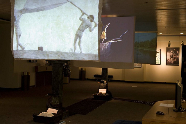 Eiko & Koma created a small installation in the theater lobby at the American Dance Festival as a part of the Retrospective Project