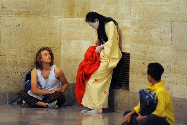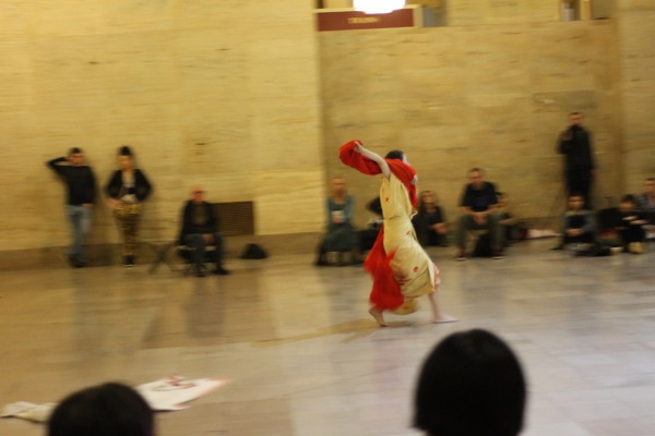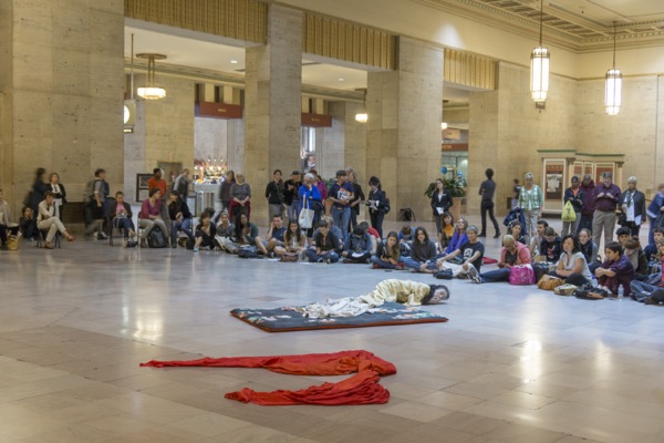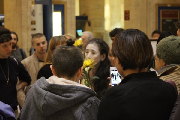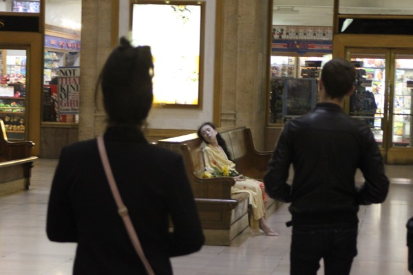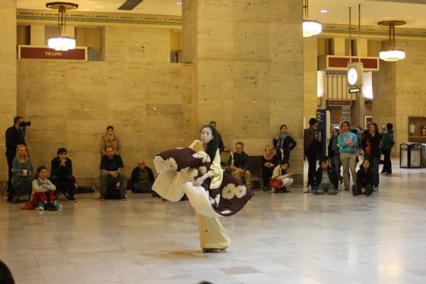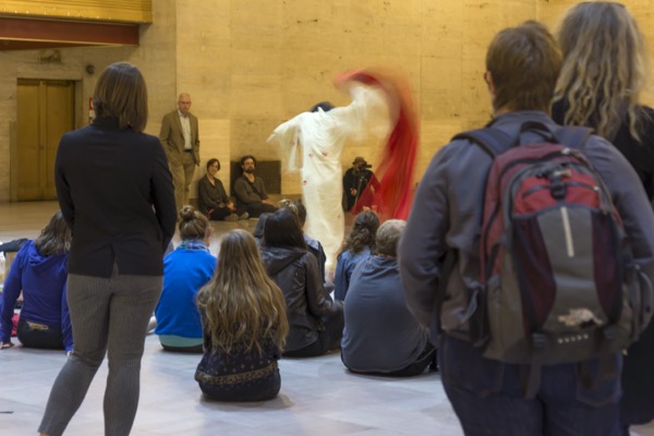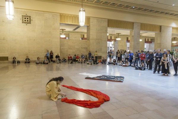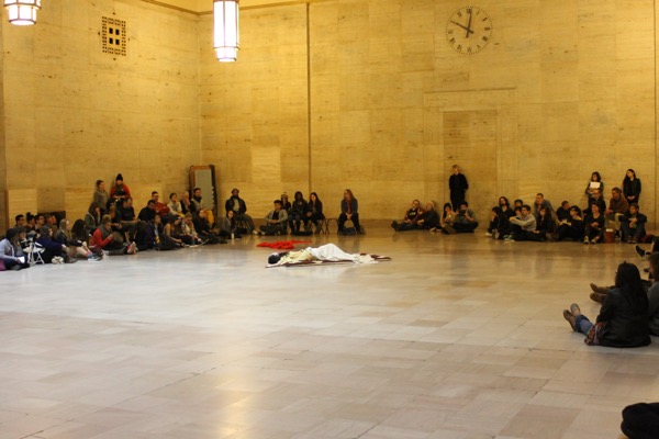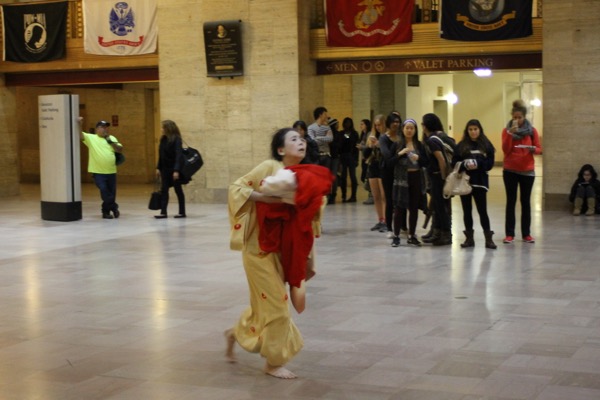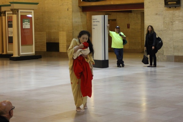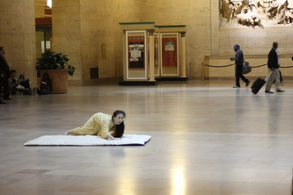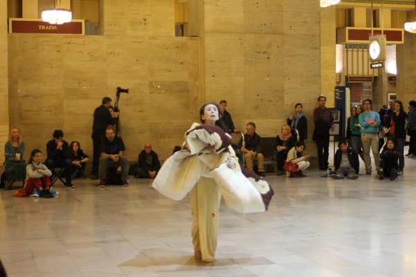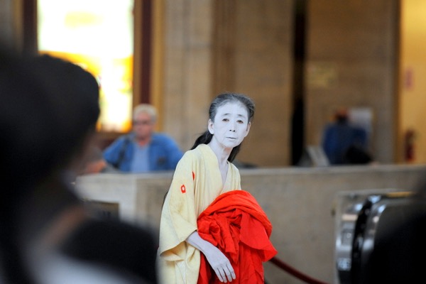 Eiko performed a durational work over four consecutive Fridays in Oct 2014 at Philadelphia's Amtrak Station.