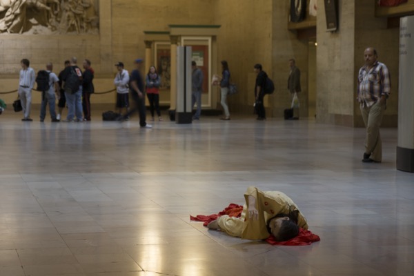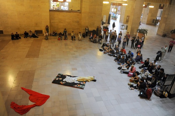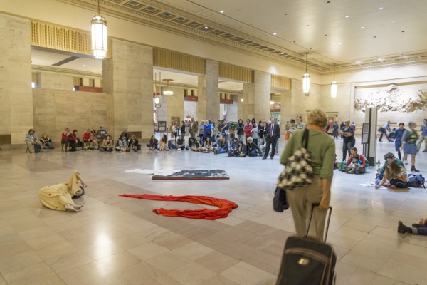 Eiko performed a series of three hour durational works on four Fridays in October 2014 in Philadelphia 30th Street Station's North Waiting Room.