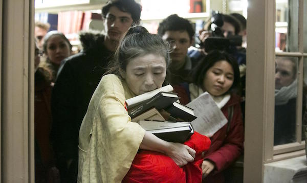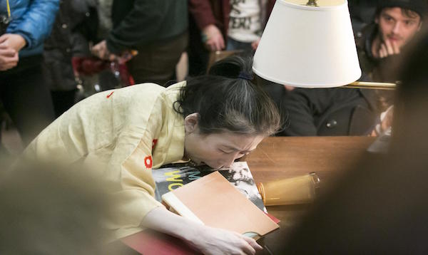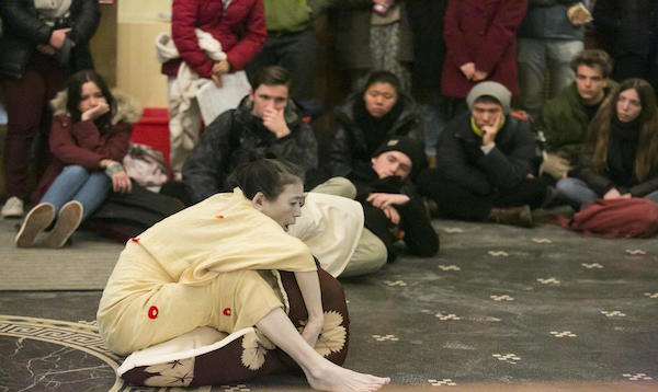 Eiko performed A Body in a Library in Wesleyan University's Olin Library on Monday, February 23, 2015 at10 pm. This is a part of her solo project A Body in Places.